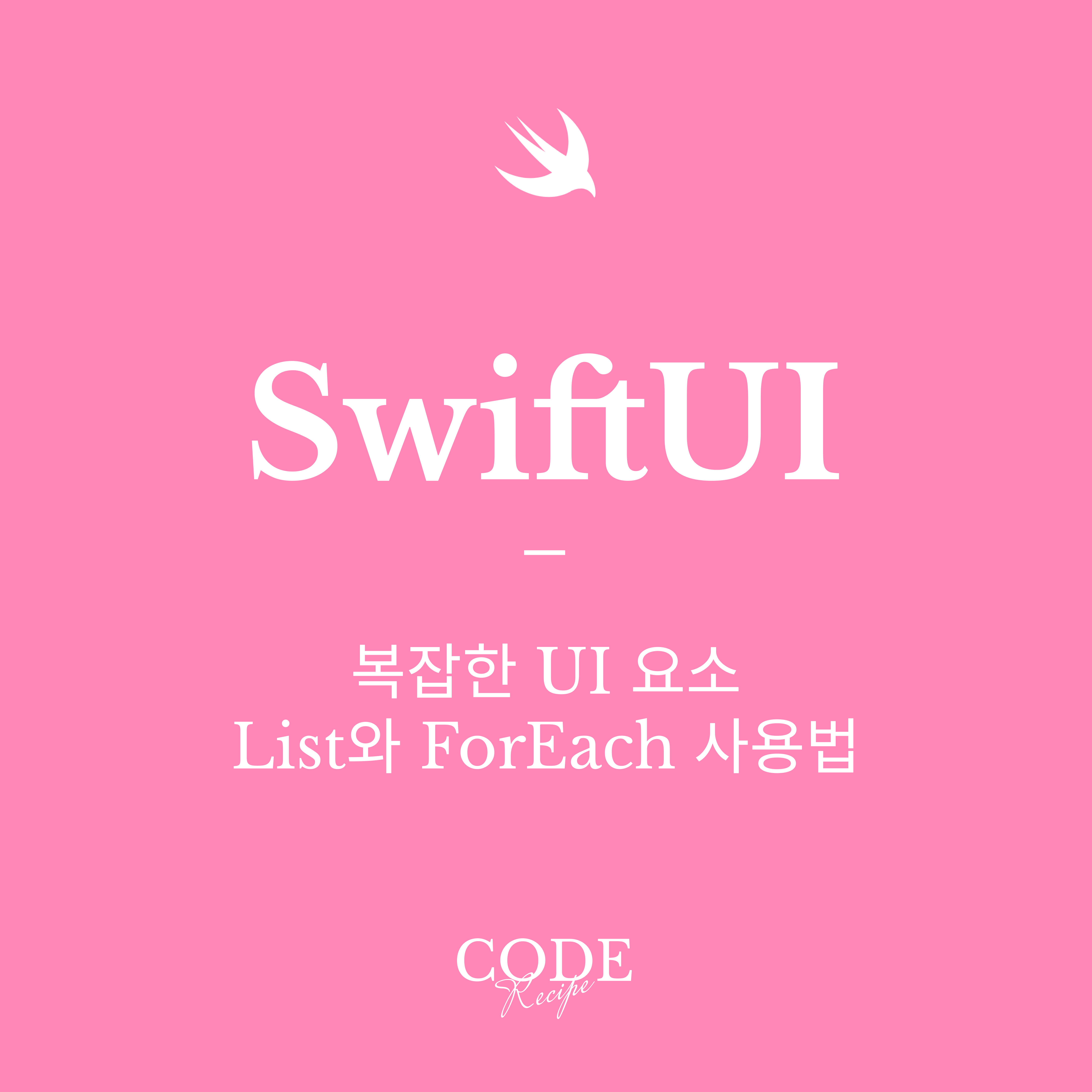 복잡한 UI 요소들을 한 번에 설명하기엔 너무 많은 양이 될 것 같아서 부분적으로 끊어서 학습하기로 한다. 오늘은 List와 ForEach의 사용법에 대해서 알아보자!👩🏻🍳