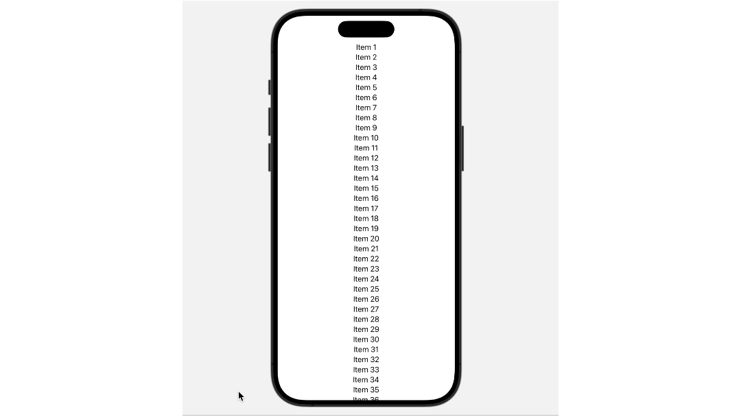 struct ContentView: View { var body: some View { ScrollView { LazyVStack { ForEach(1...1000, id: \.self) { i in Text("Item \(i)") } } } } }화면에서는 잘 알기 어렵겠지만 화면에 보이는 부분만 로드되는 것을 볼 수 있다.